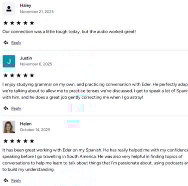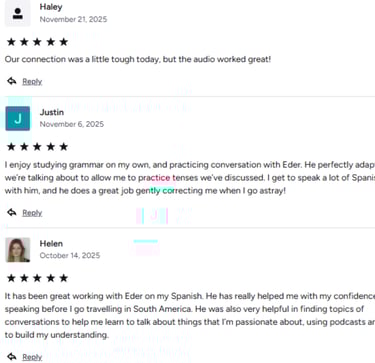 If you’re a complete beginner, Preply offers many great options — but if you want authentic conversations, emotional connection and confidence, I’m the right guide for you.