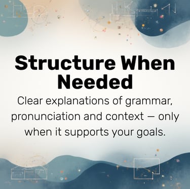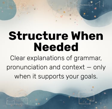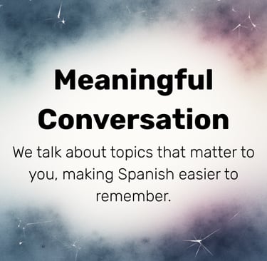 Learn to speak Spanish with confidence through meaningful conversations, gentle correction, and guidance tailored to your real life.